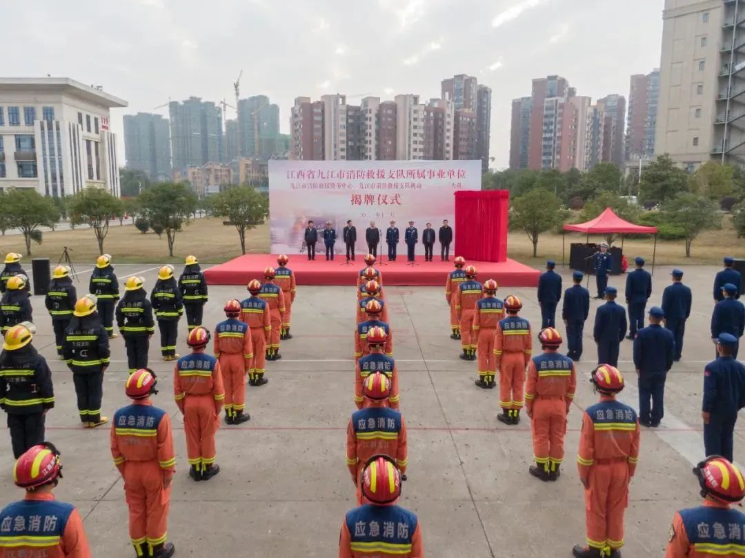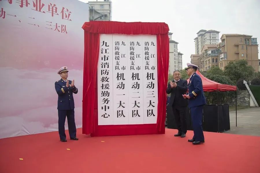 12月15日,江西省九江市消防救援支队所属事业单位“九江市消防救援勤务中心、九江市消防救援支队机动一、二、三大队”揭牌仪式在机动三队隆重举行。