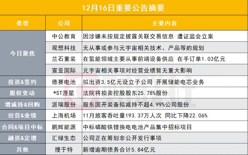 【中公教育:因涉嫌未按规定披露关联交易信息 遭证监会立案】中公教育公告,公司于12月15日收到了中国证监会《立案告知书》,因涉嫌未按规定披露关联交易信息披露违法违规,根据相关法律法规,中国证监会决定对公司立案。