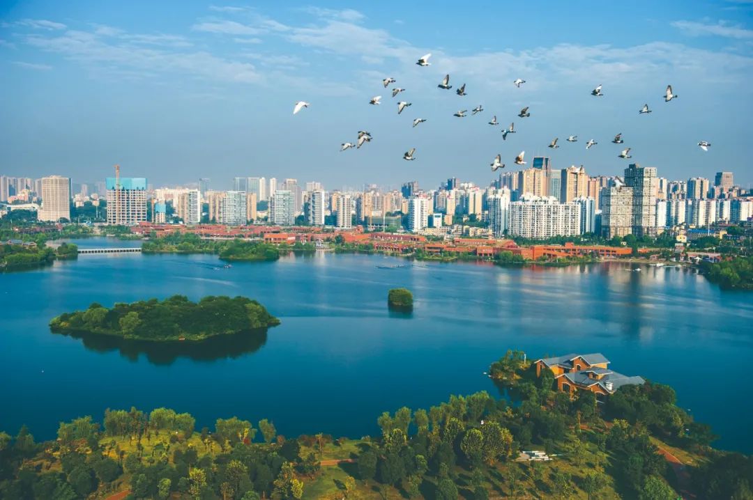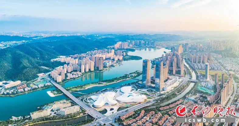 岳麓区将坚决扛起省会城区担当,争当建设富强民主文明和谐美丽的社会主义现代化新湖南排头兵。图为大气磅礴的梅溪湖国际新城。陈建平 摄