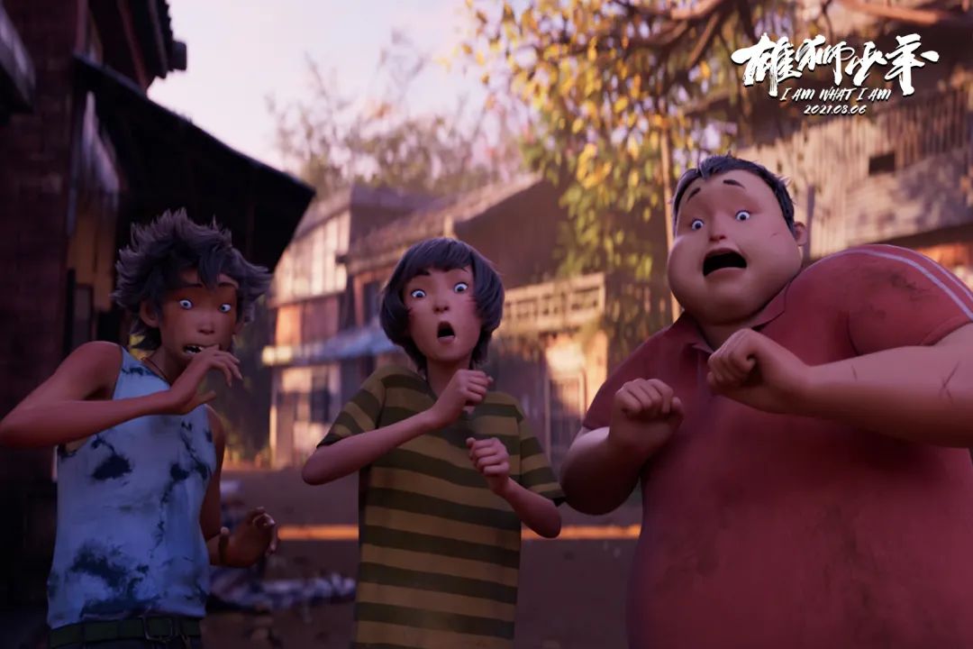 相比之下,《雄狮少年》的整个审美体系是非常完整的,无论是写实的环境与夸张的人物形象,城乡阶层的视觉表现,楼顶高光时刻的明暗交织,以及舞狮画面中动作方向的写意与动作细节的写实,都是非常工整的对照。同时,尽管有一些所谓“辱华”的争议,但影片呈现出来的这一套形象与内容在近几年的动画影片中都很难觅见,自成强烈的作者风格,而绝非一味模仿借鉴外片的“缝合怪”,这对于国产动画来说也是非常值得称赞的特质。