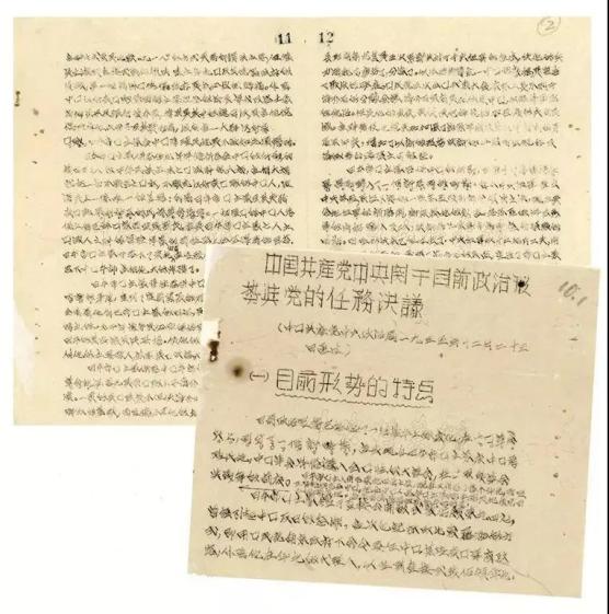 1935年12月25日,瓦窑堡会议通过的《中共中央关于目前政治形势与党的任务决议》(部分)。 图片来源:中央档案馆
