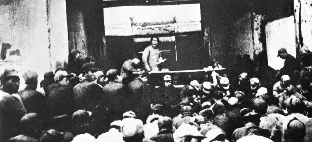1935年12月27日,毛泽东在党的活动分子会议上作《论反对日本帝国主义的策略》报告。新华社发(资料照片)