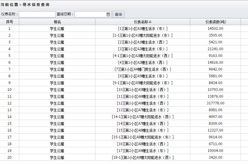 节能监管平台用水水量实时记录情况