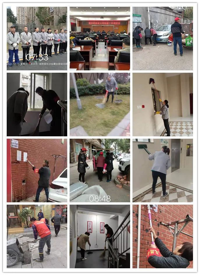 ● 12月16日,岳麓街道各社区开展卫生清扫活动,重点整治小区堆物、背街小巷环境卫生、飞线充电现象,清理垃圾74车,清理沟渠200余米。