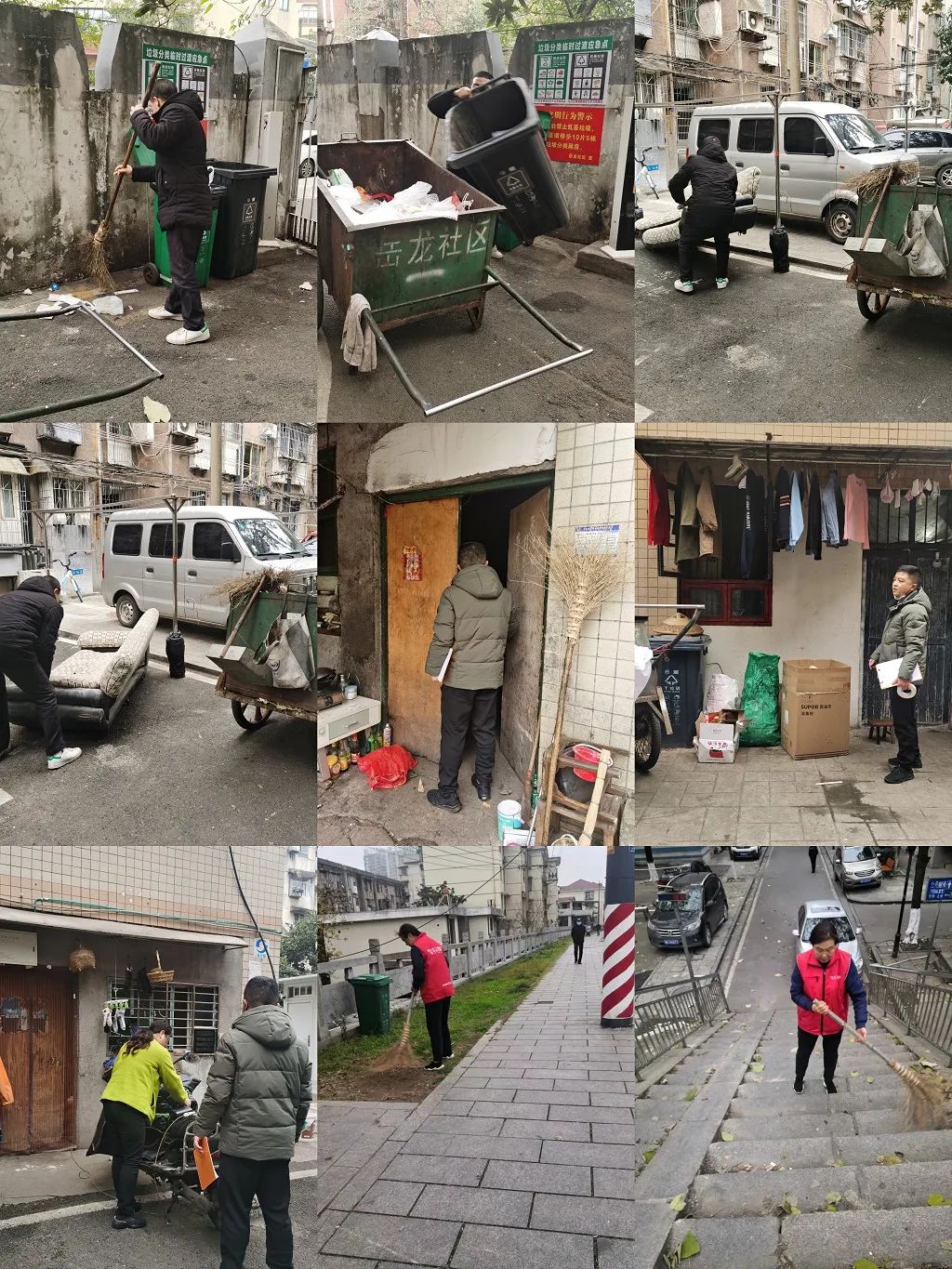 ● 12月16日,银盆岭街道组织工作人员及志愿者对辖区环境卫生进行全面清扫、对牛皮癣、绿化带、卫生死角等进行清理。