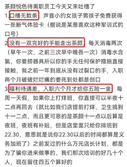 社交网站上流传的茶颜悦色员工抱怨