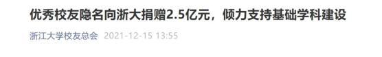 原标题:《又有好校友,捐了2.5亿!连名字都不留》