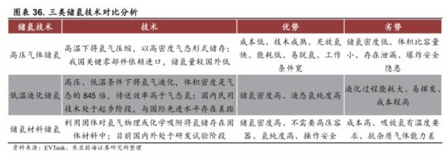 东亚前海证券研报将目前的主流储氢技术总结为:高压气体储氢、低温液化储氢、固态储氢。