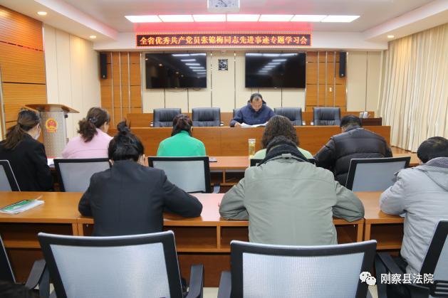 为扎实推进党史学习教育,发挥先进模范作用,弘扬英模教育,践行榜样精神,12月17日上午,刚察县法院组织全院干警召开专题学习会,认真学习了全省优秀共产党员张锦梅同志的先进事迹。