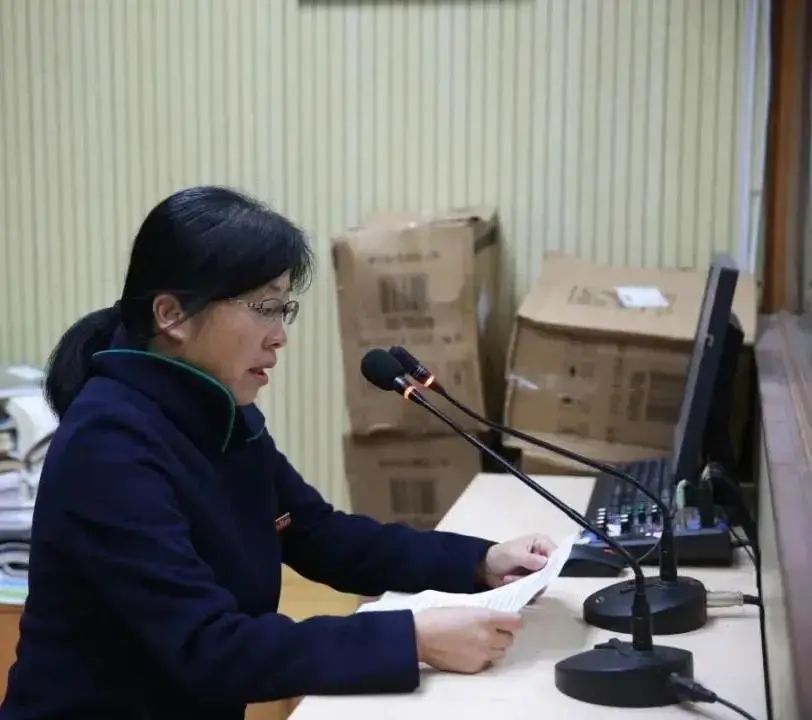 △张咏梅通过校园广播向因为疫情而无法回家的留校住宿生读信