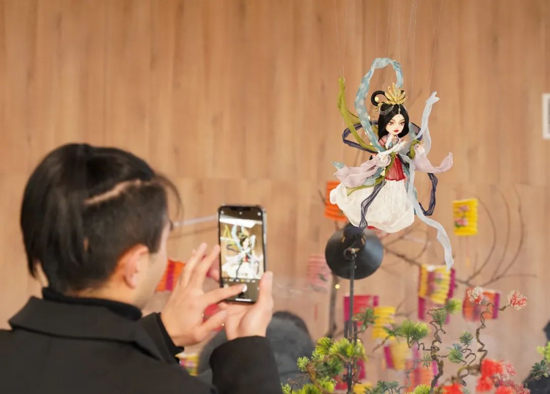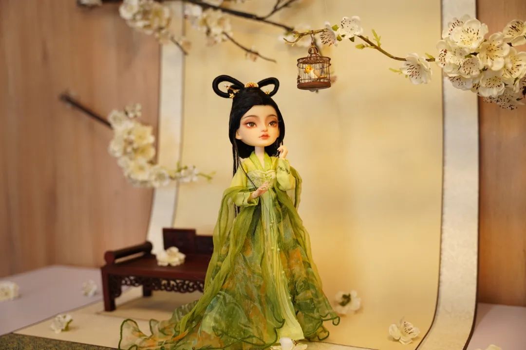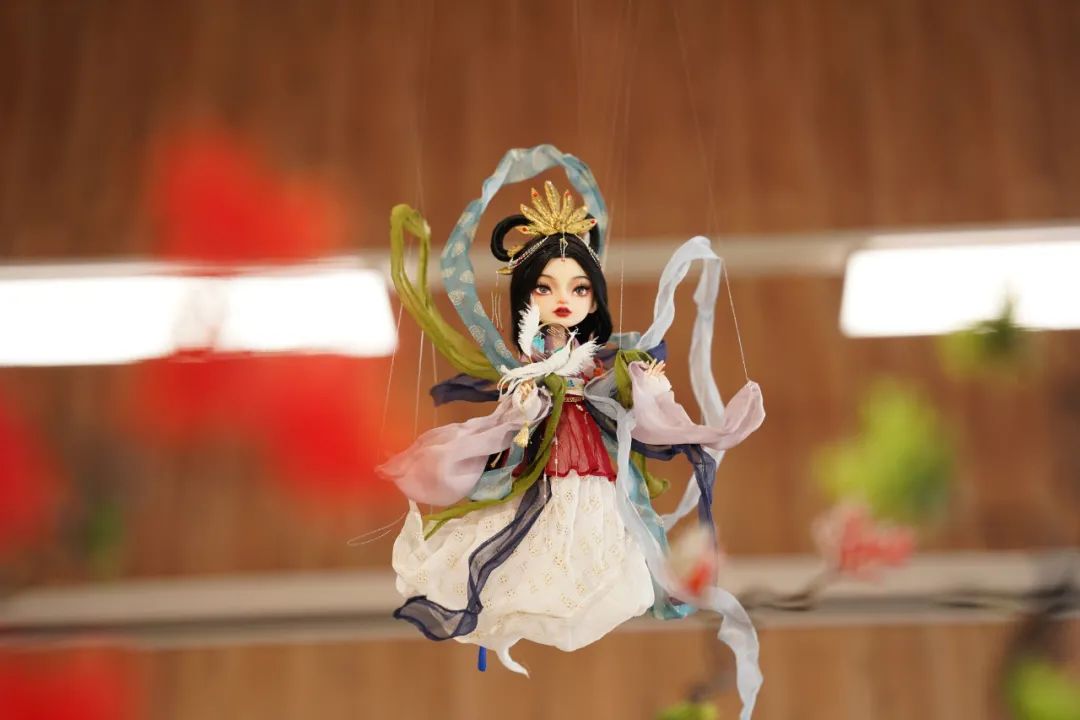 展出现场,身着华丽服饰的“洛神”在天空飞舞,身上的丝带飘逸灵动,婉若游龙,再加上特别设计的凤式头饰,给人一种神仙姐姐降临的感觉。除了华服版的洛神,现场还展示了清新淡雅的绿色调常服版洛神,以及武则天、侍女等充满洛阳历史文化元素高端潮娃。