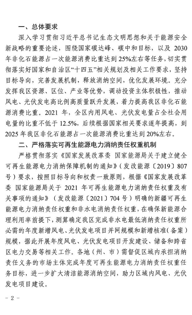 根据《通知》,新疆自治区2021年度非水电最低消纳责任权重12.5%,2022年非水电消纳责任权重最低预期值13.75%,新疆2021-2022年新增风电、光伏发电项目保障性并网规模约526万千瓦(不含2021年8月前存量项目)。