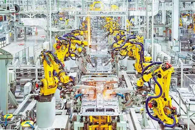 在该工厂焊装车间,近百台机器人让生产自动化率达到100%,再加上涂装车间的涂胶、喷涂机器人,冲压车间的大型全自动高速冲压连续生产线,所有生产环节都充满“智能因子”。智能化运营管理方面,工厂通过仓储管理系统、物流执行系统等,实现了物流质量管理、配送管理等一系列智能化管理,并通过云端平台、虚拟云系统等实现了电子采购、办公自动化等数字化运营。