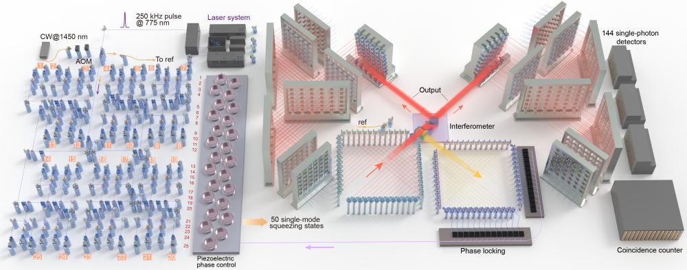 “九章”啥样?在安徽合肥微尺度物质科学国家研究中心,两个通过光纤连接起来的长3米宽1.5米的不起眼“盒子”和“盒子”里密布的光学元器件,就是“九章”。“一个用来产生光源,另一个进行干涉,把光信号变成电信号后引到隔壁的探测器进行分析。”陆朝阳的学生、“九章”论文第一作者、95后博士生钟翰森介绍。