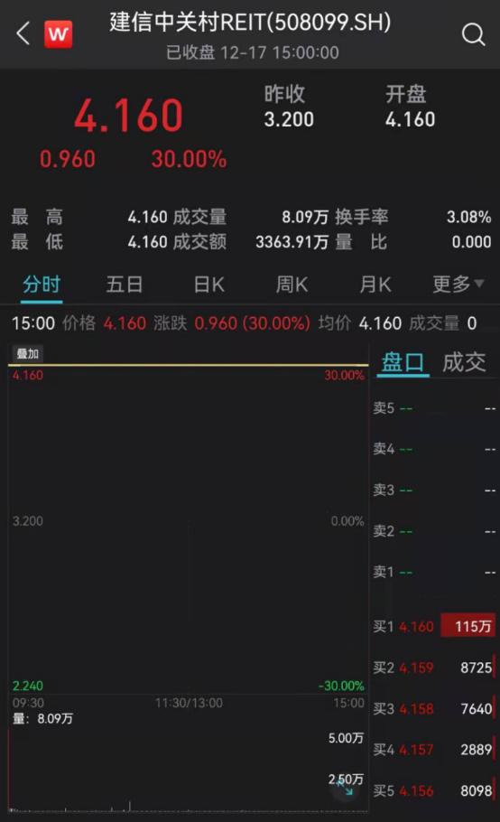 12月17日,建信中关村REIT开盘即封死30%涨停,成第一只上市首日即涨停的不动产投资信托基金(以下统一简称REITs)。