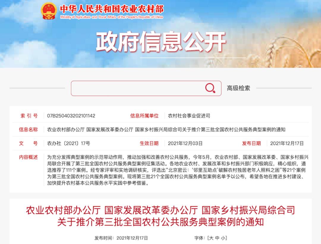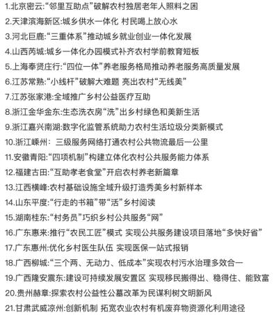 原标题:《21个!第三批全国农村公共服务典型案例名单公布》