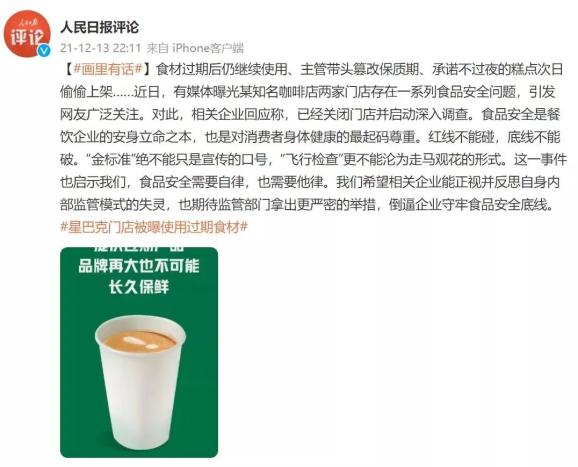 从人民日报与央视的第一时间锐评发声,到其他专业媒体的迅速跟进,以及网上舆情的二次的发酵,都看得出来民众对这次星巴克的食安问题,要比之前华莱士、杨国福、茶百道、吉野家等品牌的食安问题,反应要大得多。