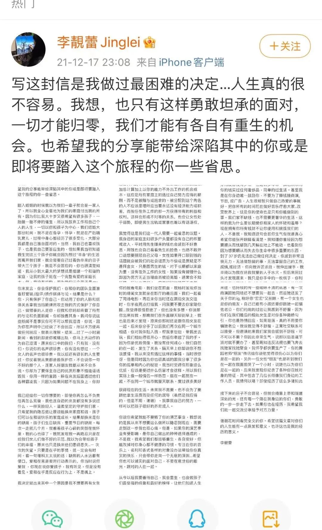 12月17日深夜,王力宏前妻李靓蕾发微博长文控诉王力宏。