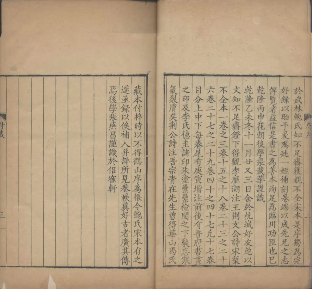 董校本对读者的友好,还体现在其细腻的校勘原则和丰富的附录中。董校本不但版本搜罗齐备,而且凡例详明,仅李壁注校勘原则即有十五条,尽量使有用的信息萃集其中又井然有序,避免读者再去翻书查找之苦。如龙舒本编次与《临川先生文集》《李壁注》差别较大,但之前的点校本未列示龙舒本的卷帙,亦未说明龙舒本有无此诗。董校本则凡龙舒本不载的诗,皆出校记,凡出校,皆说明龙舒本在卷几,重出诗则标明各卷异文,读者使用更加便利。附录方面,存世的重要的李壁注的序跋、题记、版本著录等,董校本皆予囊括,特别是清绮斋后印本的序跋等,之前罕见披露。附录亦有简单的校勘记,对其中的误字、误说予以勾稽考辨。