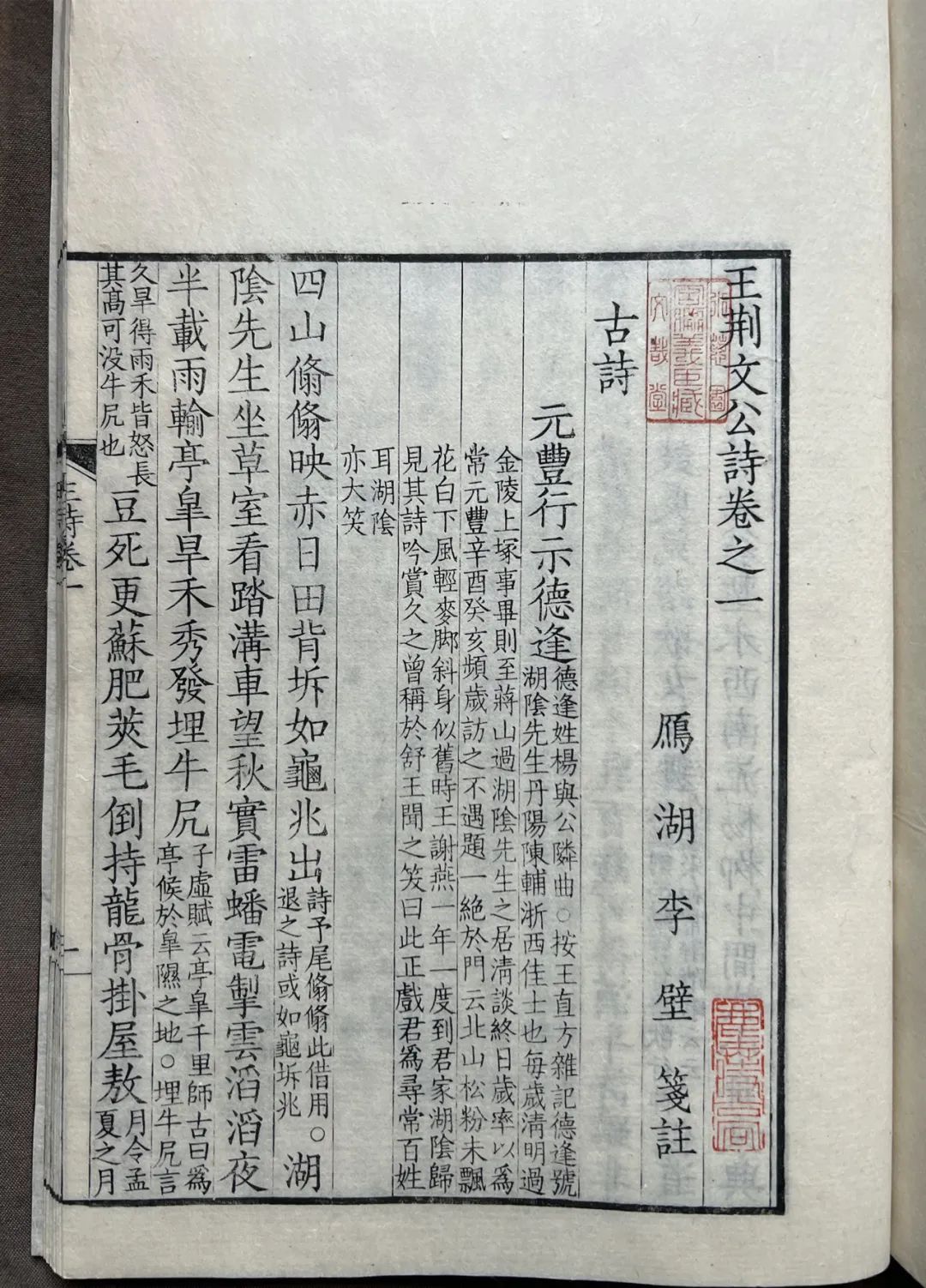 李壁注虽用功精深,但除传刻形成的文字讹误外,也有原注即误者。如卷十五《蒙亭》,李注引《梁史》为证,认为“萧深藻”当为“萧藻”。董校本则据相关史料指出“萧深藻”当作“萧渊藻”:“唐修南北朝诸史,避李渊讳,或改字作‘深’,或空字而为单名,致有歧说。李壁考《北史》及《梁书》异名,而疑萧深(渊)藻当为单名,实误。”这些原作者自身的疏失,董校本也力所能及地揭出,属于读者额外的福利。