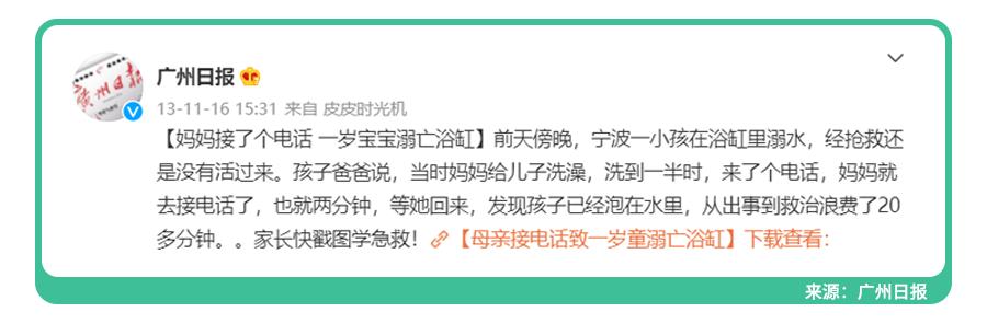 最后还有一点要强调,宝宝洗澡的时候,家长不要中途离开。
