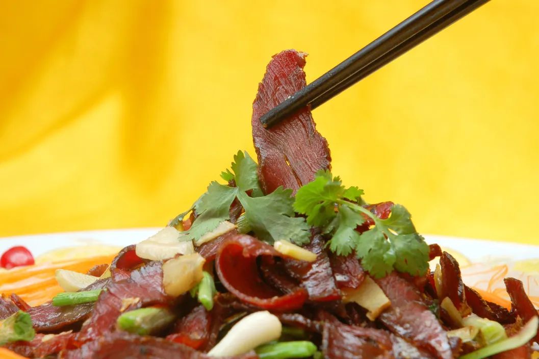在北风的自然风干下做成的牛肉干,吃起来鲜韧味美,让人齿颊留香。