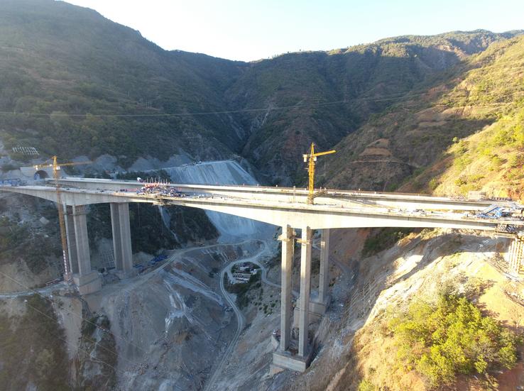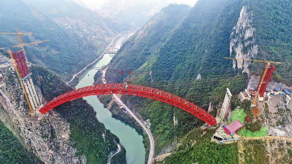 12月14日15时,随着最后一节拱肋吊装完成,目前国内在建最大跨径和施工难度最大的拱桥——宜(四川宜宾)昭(云南昭通)高速公路白水江特大桥主拱圈在333米的高空成功合龙。主拱圈的顺利合龙,标志着白水江特大桥核心部分已经施工完成,宜昭高速公路二期建设项目全线工程建设取得重大突破性进展。