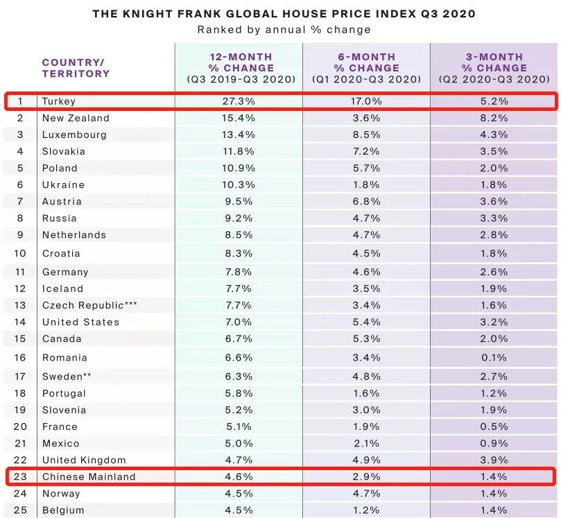 实际上在全球房价普涨的2020年,土耳其以27%的涨幅登顶过榜首。