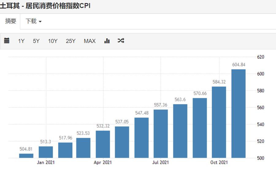 根据此前公布的数据,土耳其前11个月的CPI指数较年初增长了20%,较去年同期上涨21.31%。