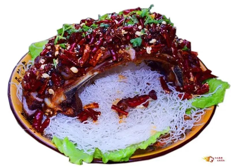 排骨入油锅炸至表面金黄,粉丝炸脆垫底,干椒、花椒、大料等入锅爆香,浇到炸好的排骨上即可。