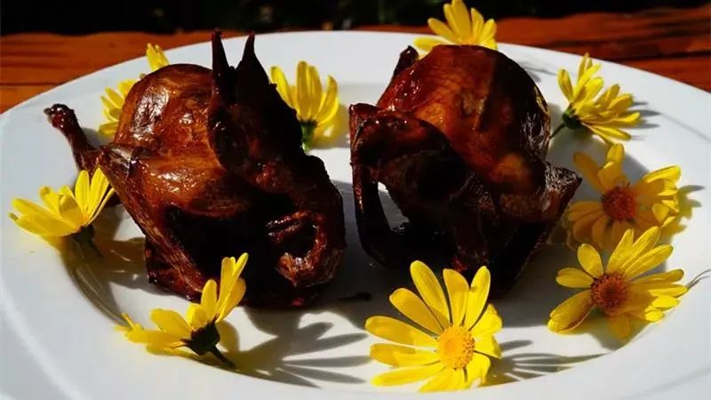 姚安乳鸽专挑未满月的小鸽子烹饪成色香味美的佳肴。其肉质嫩骨酥,不肥不腻,既是席上珍肴,又是滋补佳品。油炸乳鸽取孵化满20天的乳鸽去毛,去内脏洗净,晾干水分后加食盐、酱油、花椒、洋葱丝搅拌匀,腌制两小时,再放入翻滚的秘制卤汁中小火慢煮两小时以上,待油温烧至六成热,入锅炸熟即可。