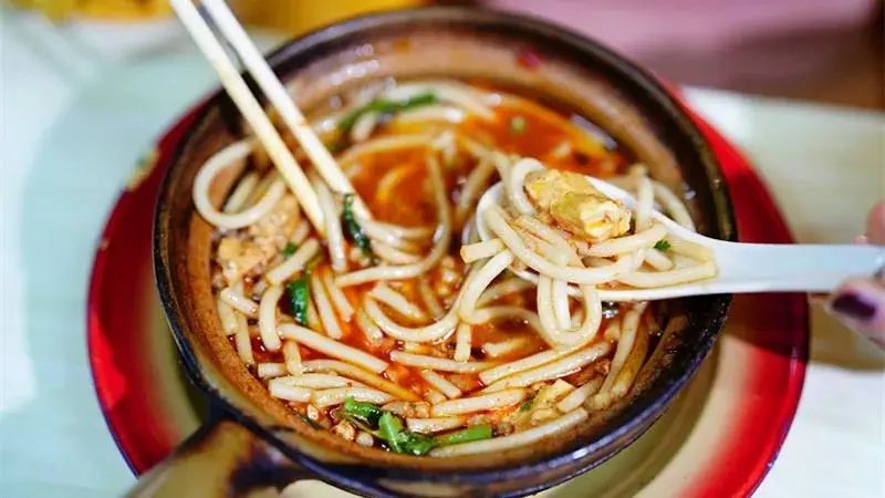姚安臭豆腐砂锅米线选用姚安臭豆腐作为原材料,加上姚安粗米线、豆酱、韭菜、酱油等,用特制的砂锅和清泉水烹煮,是姚安一道家喻户晓的特色小吃。