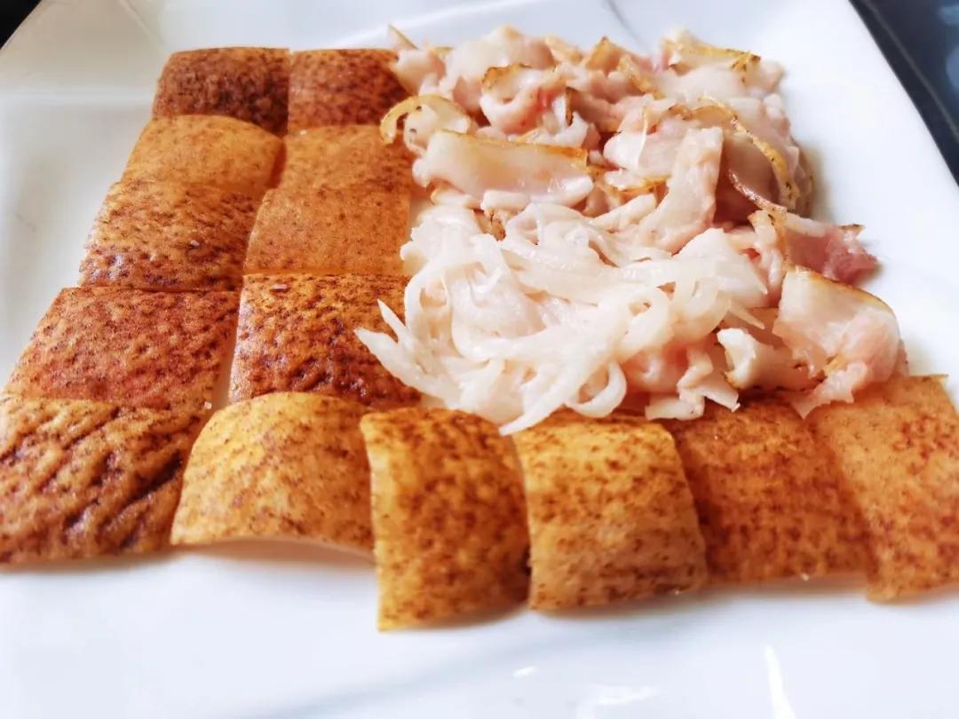 生皮是大理人的最爱,其实,生皮并不完全是生肉。清晨,宰杀好的猪,铺上厚厚的稻草慢慢灼烧,直到皮毛焦黑,再刮净焦黑的皮毛露出黄爽爽、香喷喷的皮子,此时,将皮子割下切成方块,拼在盘中,再来一小碗剁碎的猪里脊肉,皮子金黄,瘦肉粉嫩,配上蘸水,可谓活色生香。