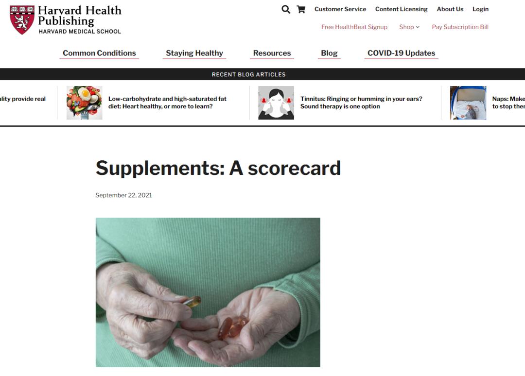 当前,保健品受到不少人的追捧,认为吃保健品可以强身健体,预防疾病。不过也有些人认为保健品就是买一个心理安慰,并没有太多功效。2021年9月,哈佛医学院《哈佛健康》发文,对广大人群是否需要补充目前市场上常见的营养保健品进行了分析。