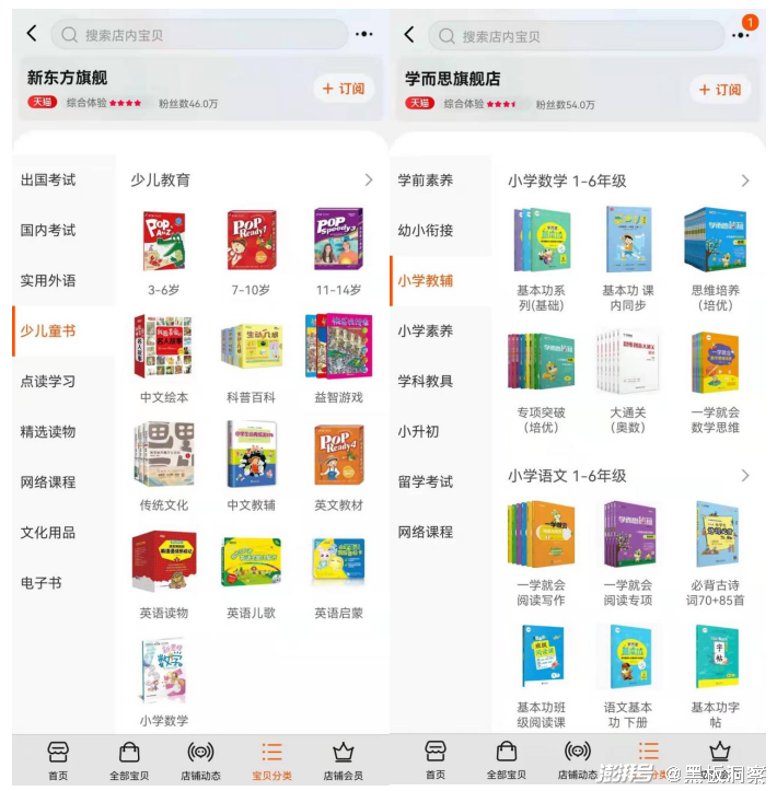 学科类课程这扇门既然已经紧锁,各家机构也开始另寻出路,欲求新解。以淘宝天猫平台为例,新东方教育旗舰店主要聚焦大学四六级和考研课程;学而思则发力教辅图书、教具,推出学前素养、幼小衔接、小学教辅、小学素养、学科教具、小升初、留学考试、网课等几大品类;猿辅导主推编程、益智等素质教育思维拓展类产品;作业帮则主推教辅资料、智能错题打印机智能词典笔等教育硬件。