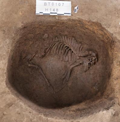 发掘中还发现不少祭祀性质的动物坑、器物坑以及形制较大的水井。其中动物坑内多填埋有完整的成年猪骨架,部分坑中甚至有两猪叠压重复填埋,反映了遗迹所在区域的独特意义。器物坑均发现于房址附近,坑内器物多数可以拼合,可能为生活中的废弃物堆积,亦可能为某种祭祀行为。窖穴是吕村遗址发现的一类数量较为丰富的遗存。吕村遗址的窖穴特征较为明显,类型也相对多样。从形制上看,有直筒形的,有台阶式的,还有袋状的。