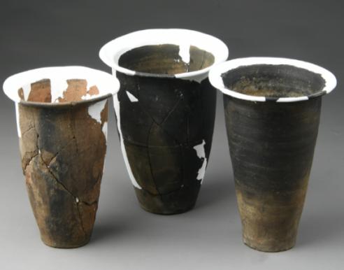除了以上丰富遗迹外,本年度发掘还出土500余件珍贵的遗物,材质上涉及陶、石、玉、骨器。其中带“日火山”字样刻划符号的大口尊,为胶东地区的首次发现;做工精巧的陶萧,反映了古人丰富的文化生活;滑石质的牙璧及精美的玉饰件,也是该遗址等级较高的实证,筒形罐等的发现更是胶辽文化传播的见证。此外还有淮河流域盛行的鹿角靴形器、大型的鲸鱼椎骨、各式的磨制石器和精美陶器等,无不昭示着吕村遗址丰富的文化内涵和独特的聚落形态。