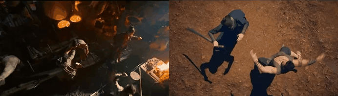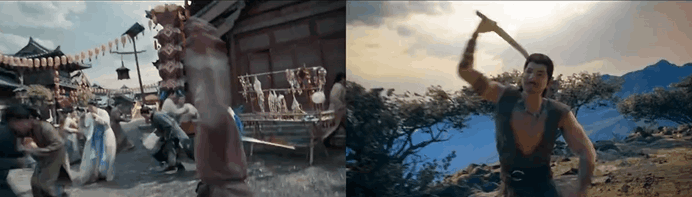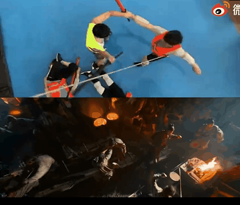 视频还放出了《风起洛阳》第十二集中铸兵坊内的动作群戏和《凡人修仙传》用动作捕捉技术制作动画的测拍小样对比片段,主角打斗动作、长镜头群演走位、镜头拍摄角度、分镜切换节奏完全是一比一复刻。