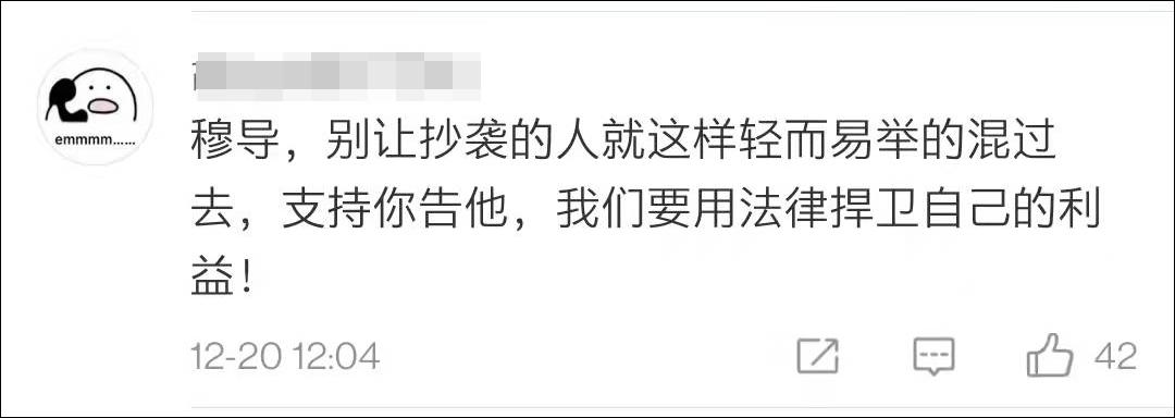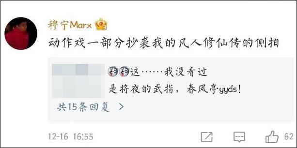 还有人声援《凡人修仙传》动作导演穆宁:“支持原创,支持你用法律捍卫自己的利益!”