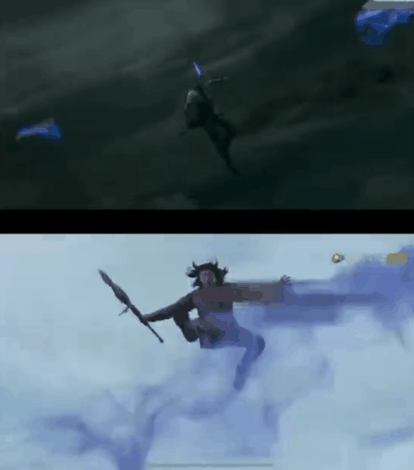 对比画面中,人物的招式设计、动作角度以及分镜头的衔接切换几乎一模一样。