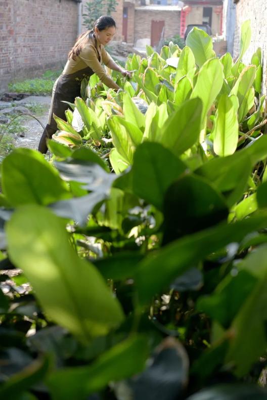 蒋丽珍家旁边的一块小菜地,长满了茂盛又绿油油的粽叶。“我家包的米粽,连粽叶都是自己种的,这样的粽子才香。”