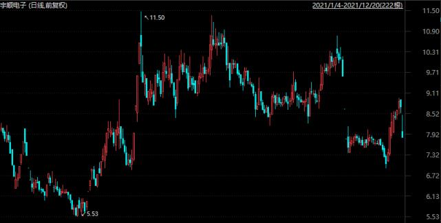 12月20日,宇顺电子(002289.SZ)低开低走,午盘跌停,报收7.85元。