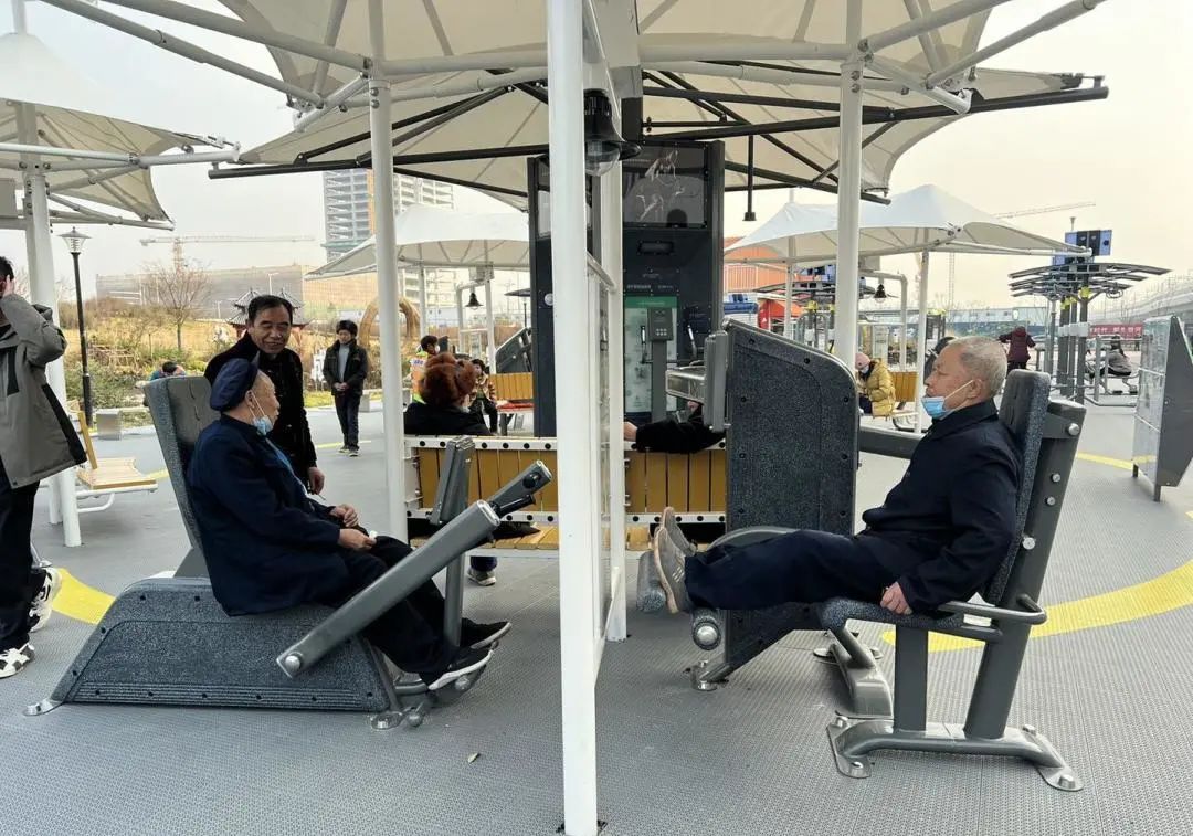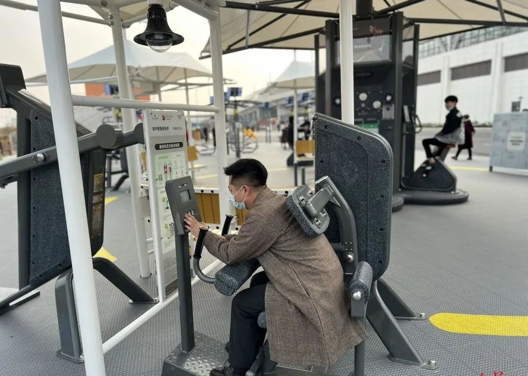 室外智能“健身房”还设有体测亭。在前不久举行的体服会现场,体测亭就凭借其智能化、便捷化的特点,成为逛展市民关注焦点,现在更是吸引大量运动爱好者前来体验。