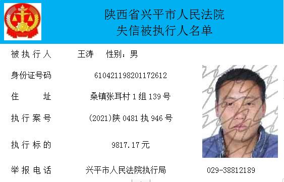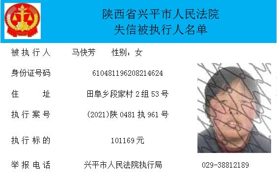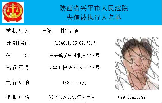 <中华人民共和国民事诉讼法>的解释》第五百一十八条、《最高人民法院关于公布失信被执行人名单信息的若干规定》、《最高人民法院关于限制被执行人高消费及有关消费的若干规定》的相关规定,将以下被执行人纳入失信被执行人名单,并限制失信被执行人进行高消费及非生活和工作必需的消费行为,向社会公布,供相关单位依照法律法规和有关规定,在政府采购、招标投标、行政审批、政府扶持、融资贷款、市场准入、资质认证、交通出行等方面,对失信被执行人予以信用惩戒,社会公众可对失信被执行人进行高消费及非生活和工作必需的消费行为进行举报,也可以在中国执行信息公开网查询。举报电话:兴平市人民法院执行局 029-38812189中华人民共和国民事诉讼法>《中华人民共和国民事诉讼法》第二百二十五条 当事人、利害关系人认为执行行为违反法律规定的,可以向负责执行的人民法院提出书面异议。当事人、利害关系人提出书面异议的,人民法院应当自收到书面异议之日起十五日内审查,理由成立的,裁定撤销或者改正;理由不成立的,裁定驳回。当事人、利害关系人对裁定不服的,可以自裁定送达之日起十日内向上一级人民法院申请复议。书面申请本院做出决定屏蔽本人失信信息时:1、案件彻底履行完毕的。2、提供证明属于低保户,经本院核实的。3、失信被执行人申请屏蔽,申请执行人书面同意的。