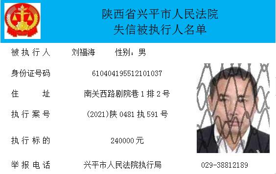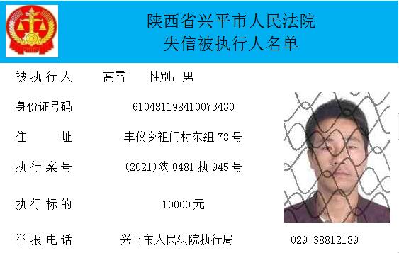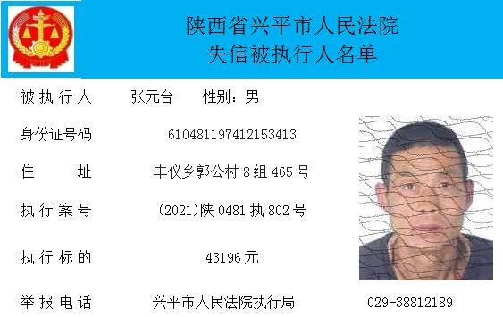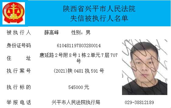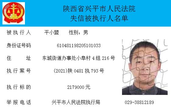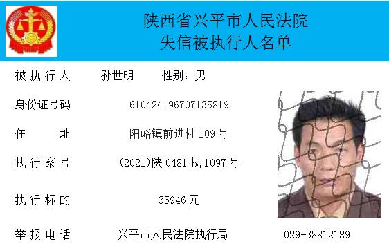 原标题:《兴平市人民法院公布2021年12月份失信被执行人名单》