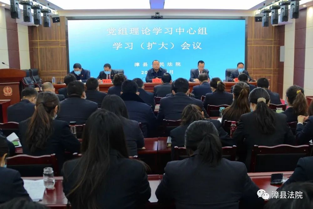 12月20日上午,漳县法院召开党组理论学习中心组学习(扩大)会议,县委常委、政法委书记石小伟同志应邀到会巡听旁听并精准指导,院党组书记、院长张胜利同志主持会议。
