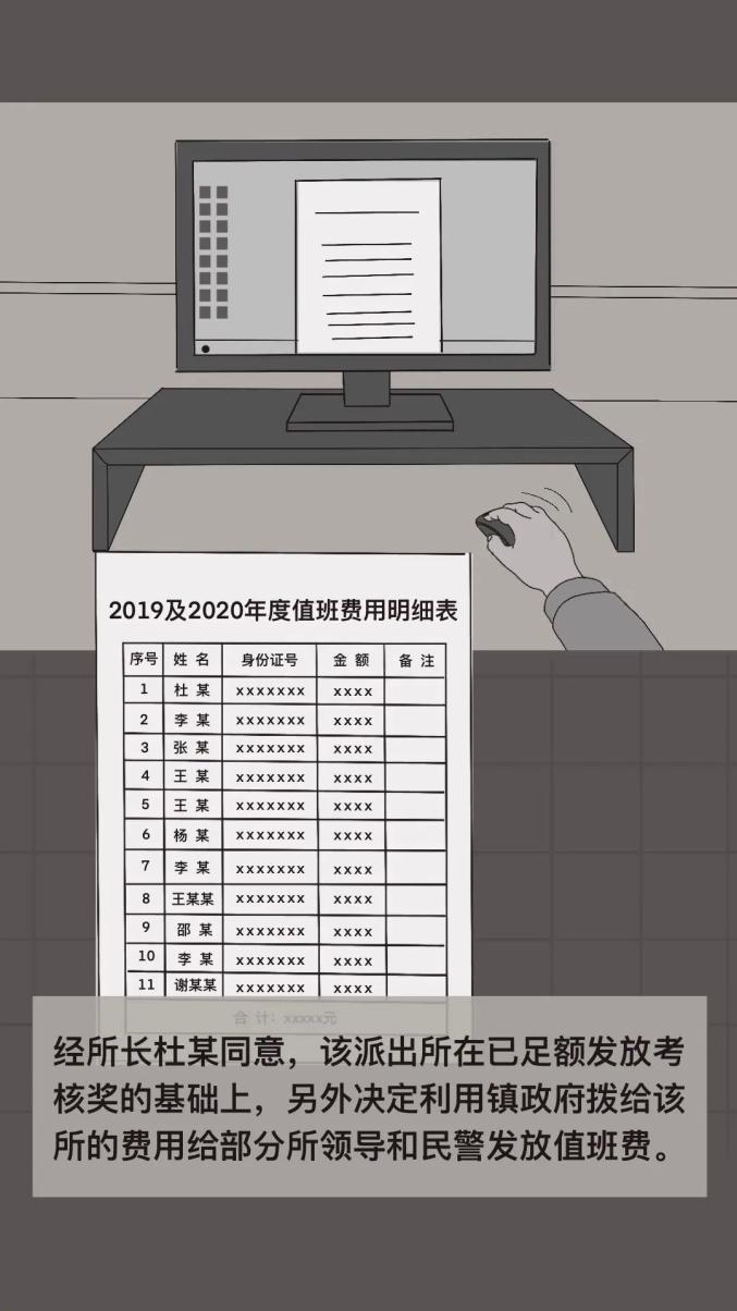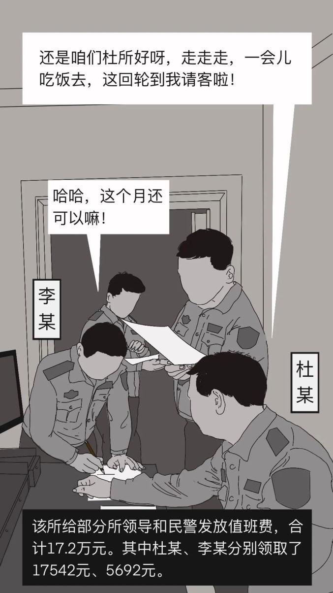 该所给部分所领导和民警发放值班费,合计17.2万元。其中杜某、李某分别领取了17542元、5692元。
