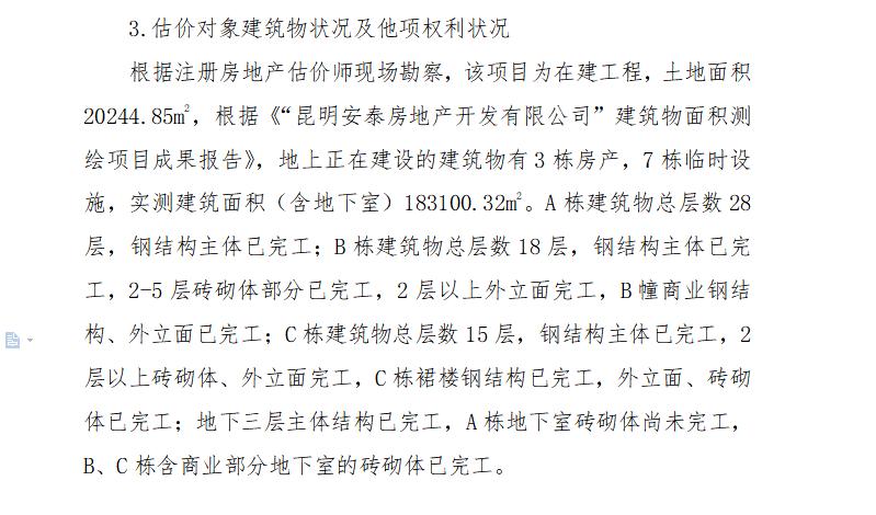 其中,A栋总高28层,B栋总高18层,C栋总高15层,钢结构主体均已完工,还剩A栋地下室还有砖砌体未完工。