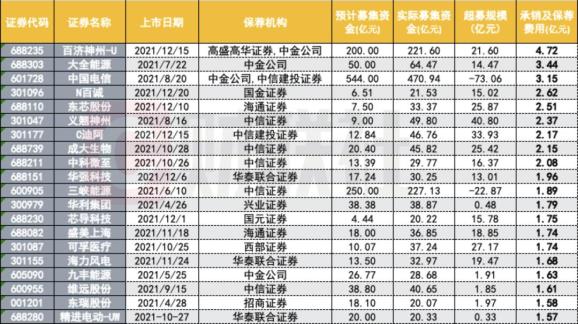 一位资深投行人士表示,“投行保荐承销收入一般按比例收取,超募代表募集资金多了,投行收取的费用自然更多。投行承销费率是不定的,一般来说,大项目的议价权更高,竞争更激烈,投行收取的承销保荐费率相对较低,但总收入不会太低;而小项目的费率相对较高,这也是一直以来的规律。”