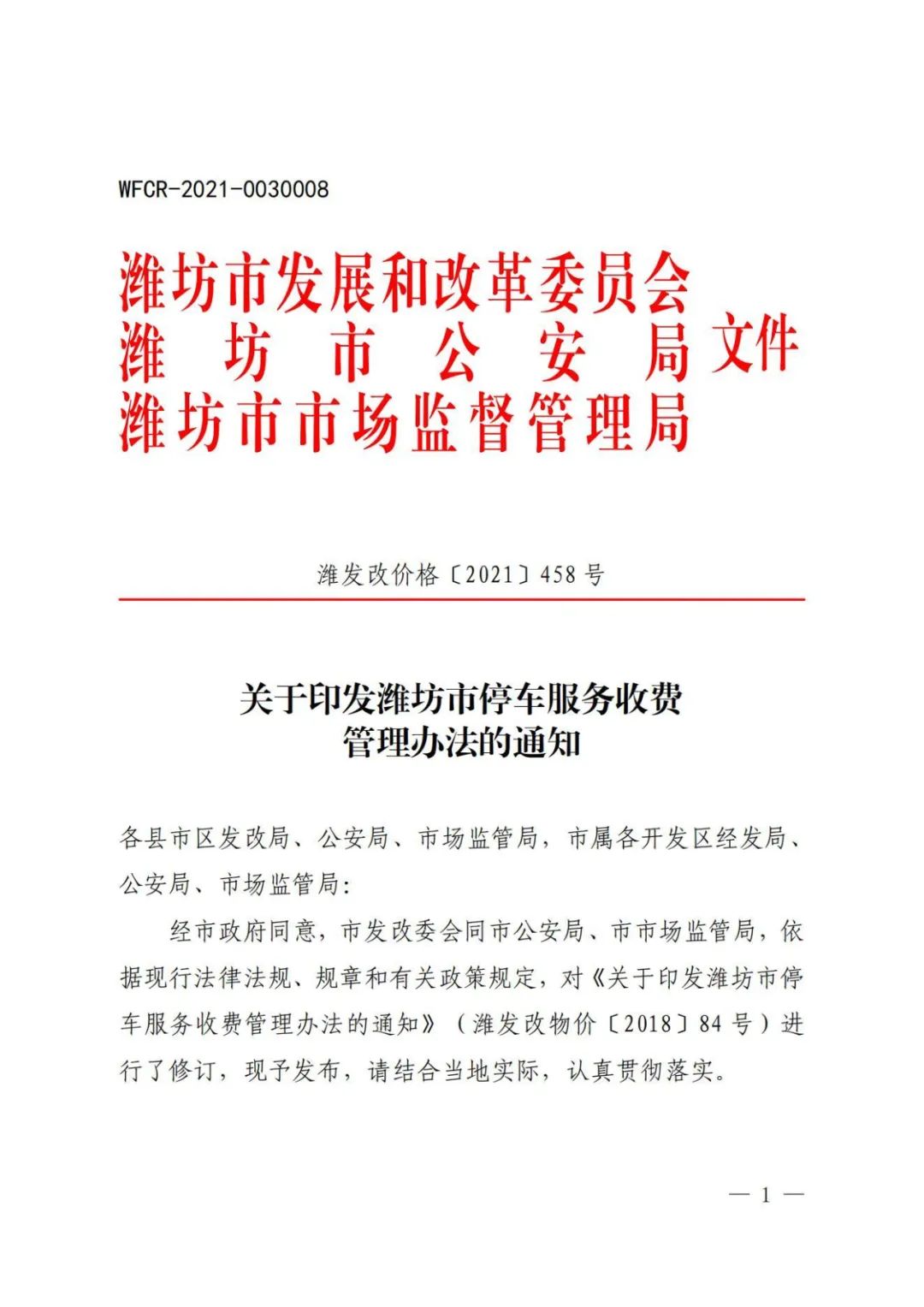 《关于印发潍坊市停车服务收费管理办法的通知》
